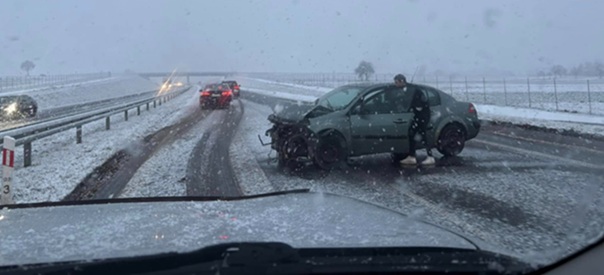 Alt går fint på turen nedover, men januar-vinteren er ikke så mild i Polen heller og ting skjer… Vi vet at det vi gjør er risikofylt, og i tillegg til ferdsel i krigsområder er det å kjøre på motorveier i sentral- og østeuropa noe av det farligste vi bedriver.