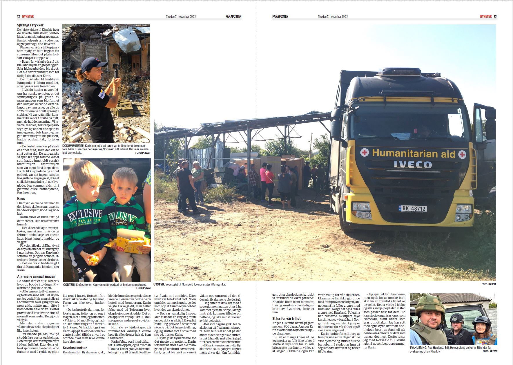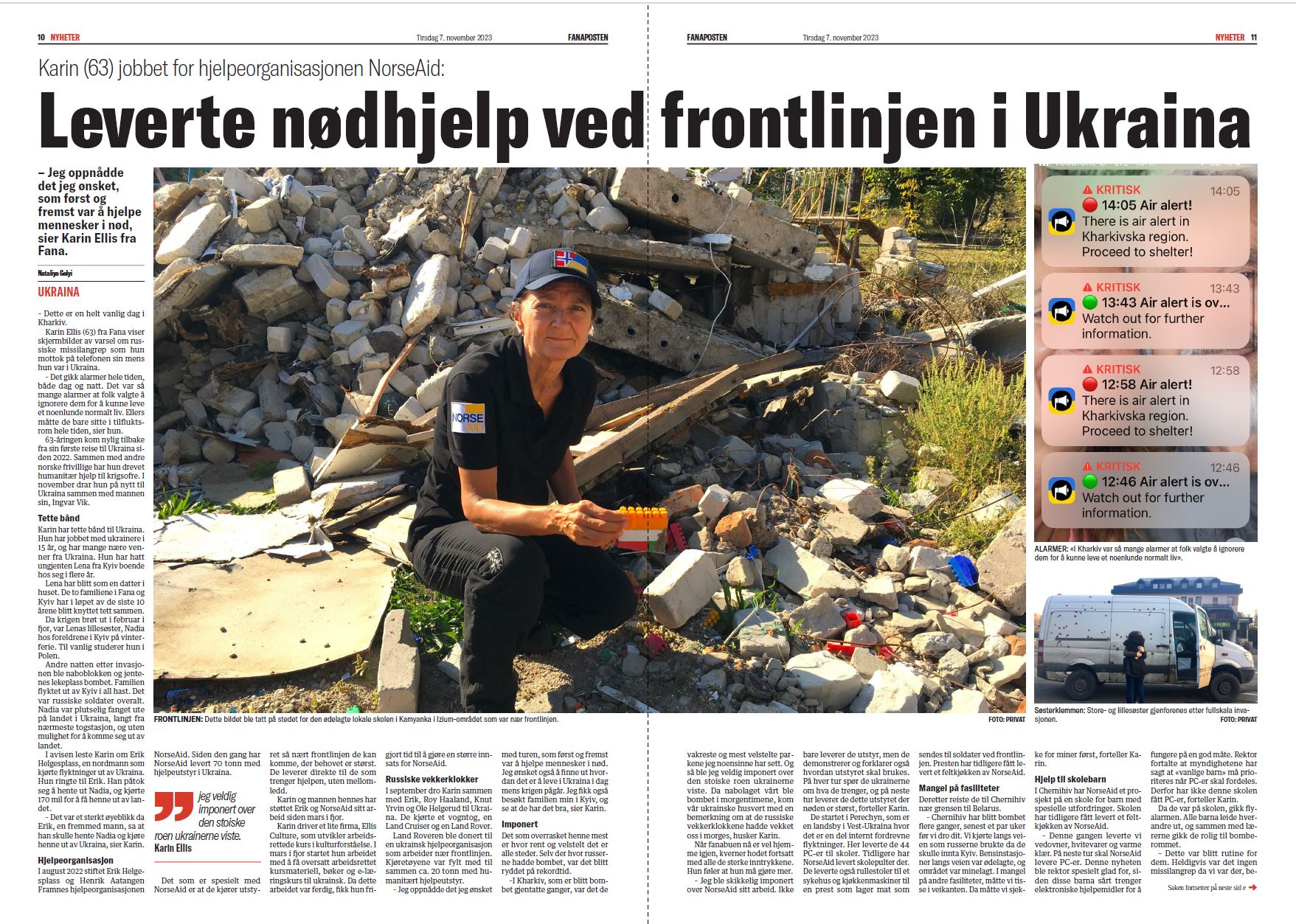 Fanaposten i Bergen, har i intervju med vår lokallagsleder i Bergen, Karin Ellis, vist det flotte arbeidet hun gjør sammen med NorseAid og hvordan vi leverer hjelp til Ukraina