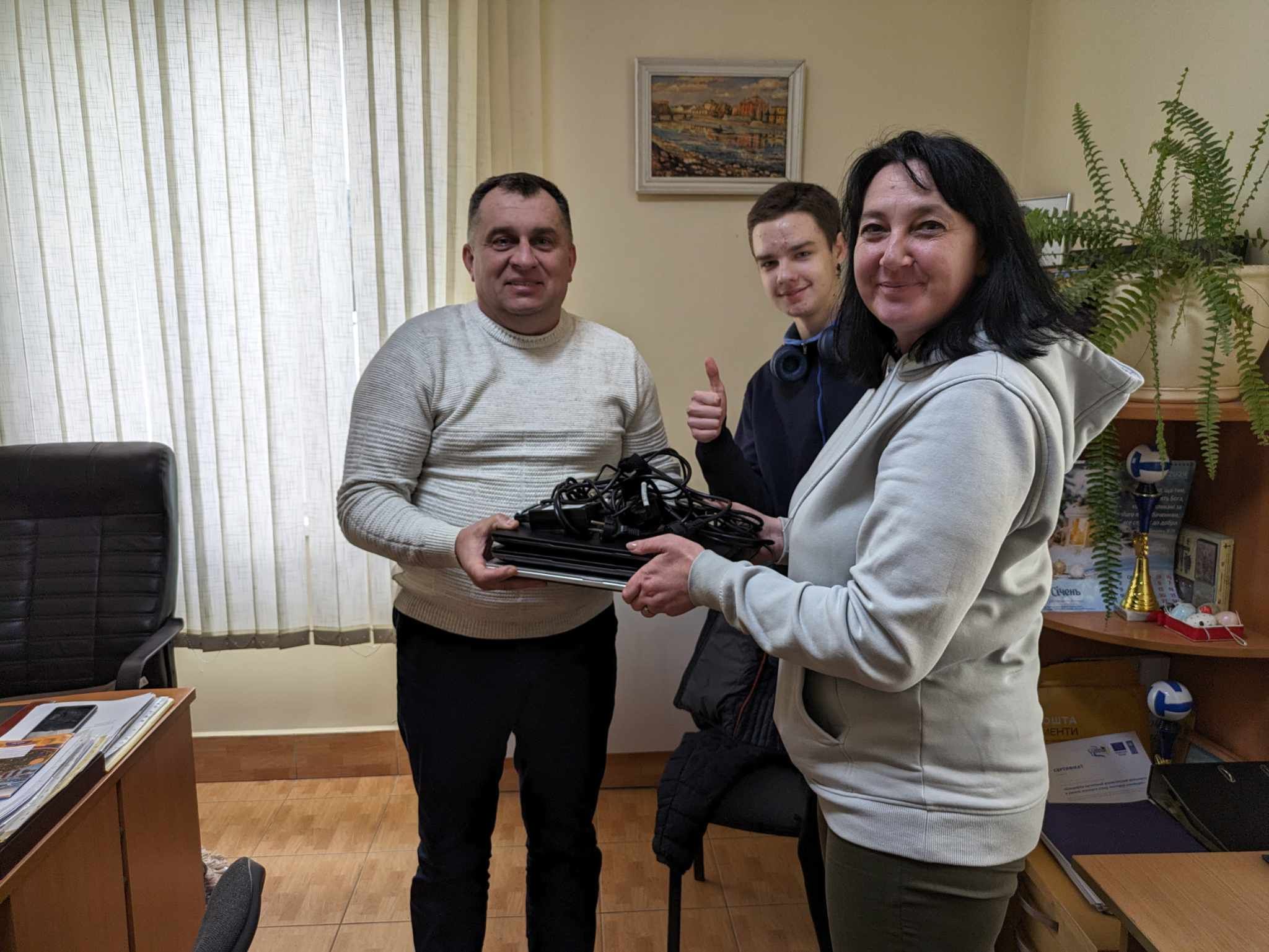 Etter 2000 kilometer med kjøring fra Noresund gjennom Oslo har NorseAid levert PC-er til fire skoler i Peretsjyn i Ukraina til stor glede for lærere og skolesjefen.